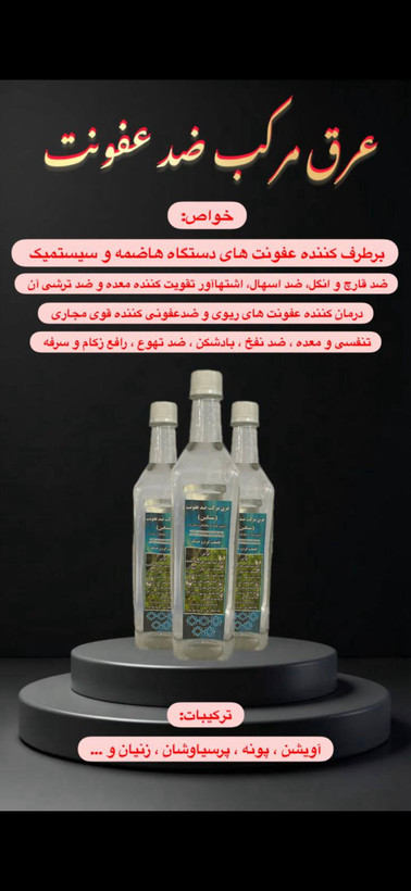 عرق مرکب ضد عفونت معده ضدنفخ دل درد ضداسهال احیای سلامت